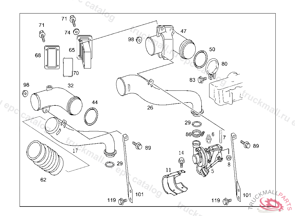 TURBOCHARGER , FIRST EXHAUST STOCK OF OLD PARTS UP TO ENGINE 147606, Replaced By: A9040965999