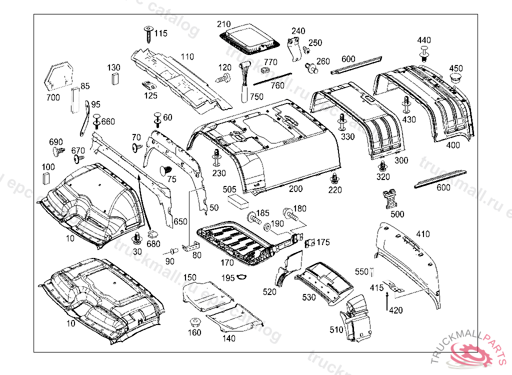 HEADLINER ROOF,REAR, E 06254220121001 TO BE ADAPTED DURING ASSEMBLY 7K87QFT906A1730 ART-GRAY, LIGHT