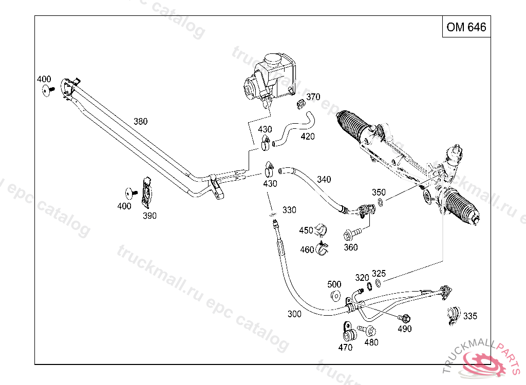 LINE FROM STEERING GEAR ON COOLING LINE, Replaced By: A9064661624