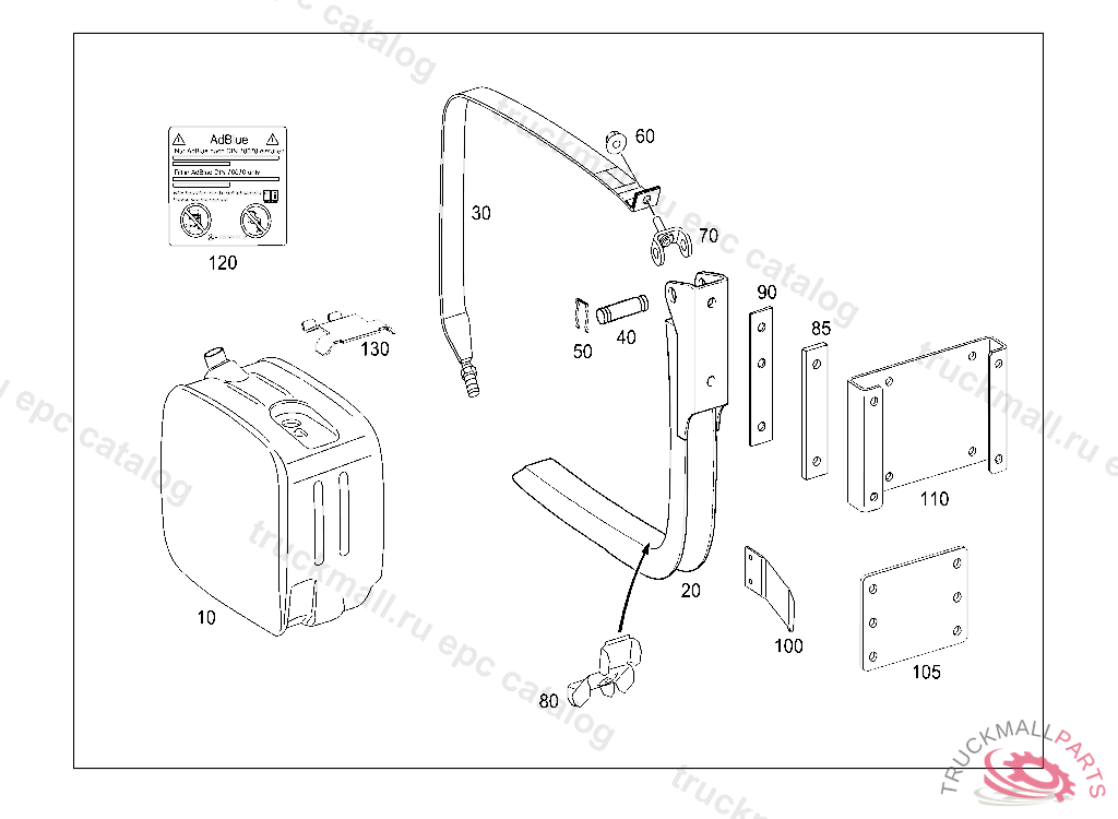 NOX REDUCING AGENT TANK ADBLUE TANK 95L, WHEN ORDERING,INCLUDE PART NO. PLUS SUPPLEMENTARY CODE 05 FOR COMPONENT PARTS SEE SPARE PARTS LIST