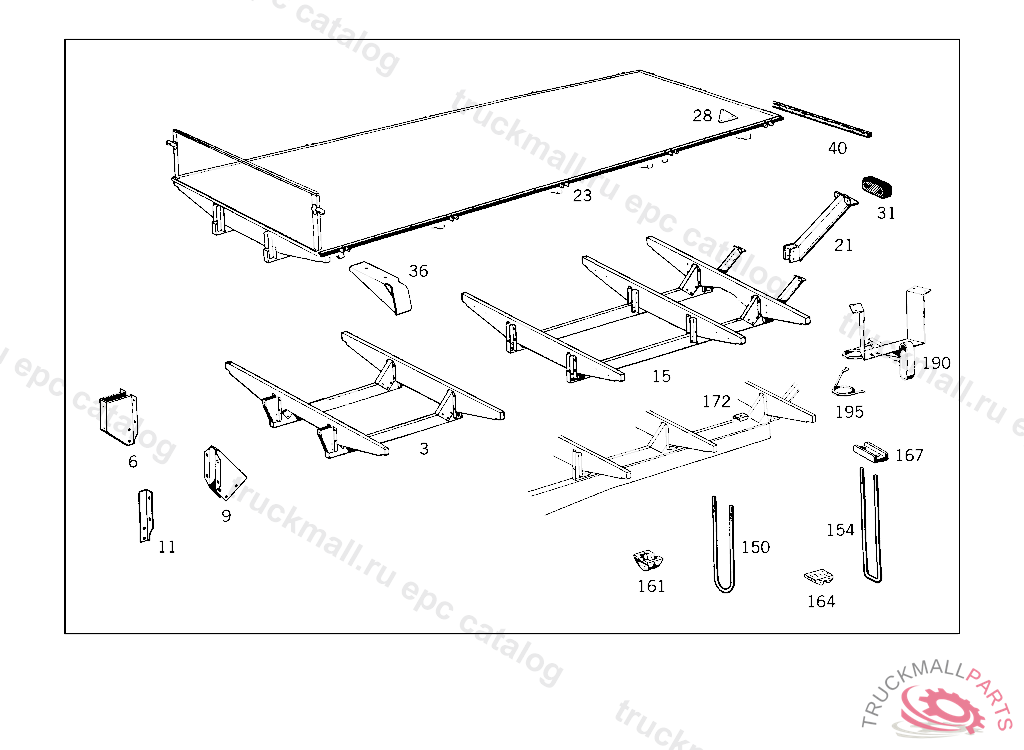 SUBSTRUCTURE (AUXILIARY FRAME), DUMPING PLATFORM AND COMPONENT PARTS,INCLUSIVE OF SPARE WHEEL MOUNTINGS,SHOULD BE ORDERED FROM THE RESPECTIVE PLATFORM MANUFAC TURERS,MESSRS.F.X.MEILLER,MUNICH