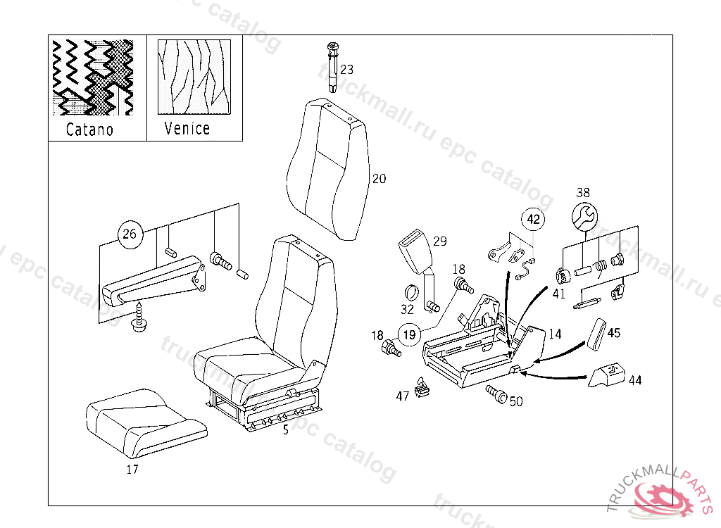 SEAT. SINGLE SEAT DRIVER AUXILIARY SEAT LEFT, FABRIC "VENICE", 20051130 IF REQUIRED ARMREST MUST BE ORDERED SEPARATELY
