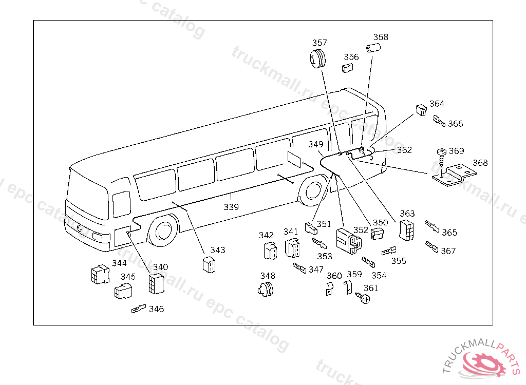 CABLE HARNESS FROM REAR END MAIN CABLE HARNESS TO HEATING, NOT FOR USE WITH MERCEDES-BENZ BODY FROM IDENT NO. 038229 FOR USE WITH MERCEDES-BENZ BODY FROM IDENT NO. 038391,ALSO INSTALLED ON