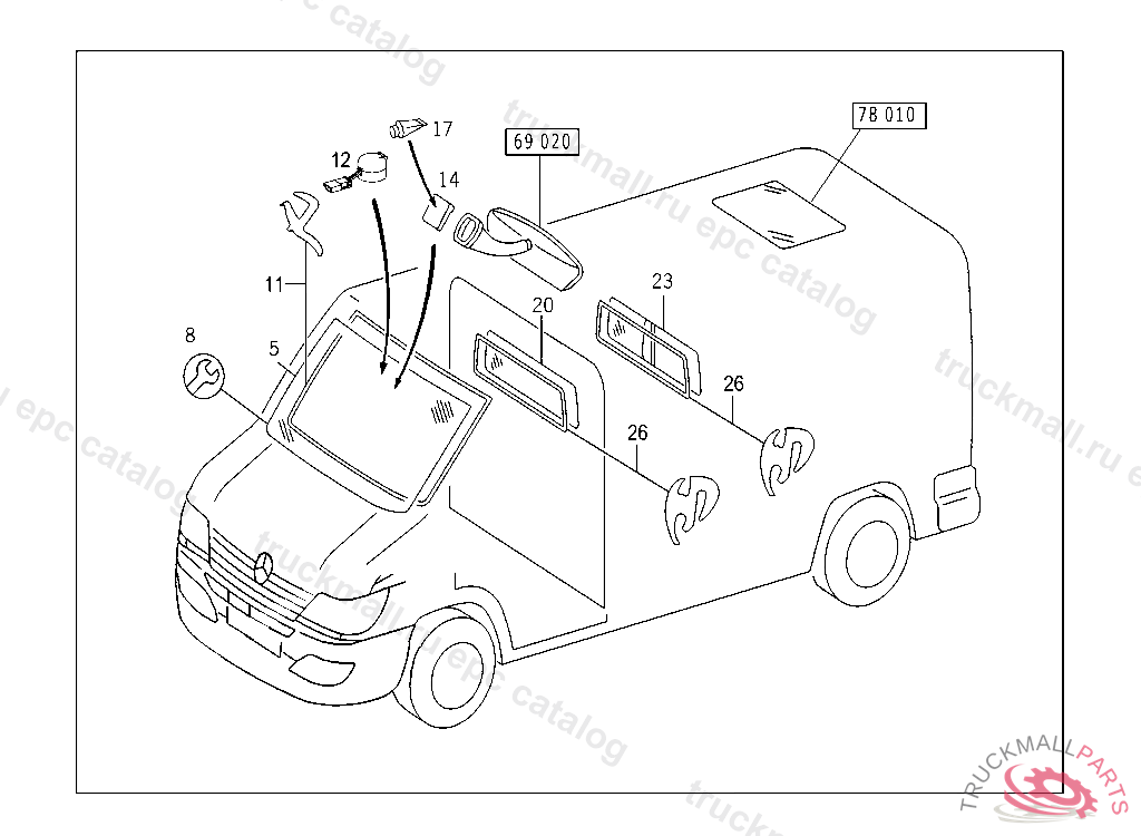 REAR WINDOW SLIDING WINDOW, Replaced By: A9066706100
