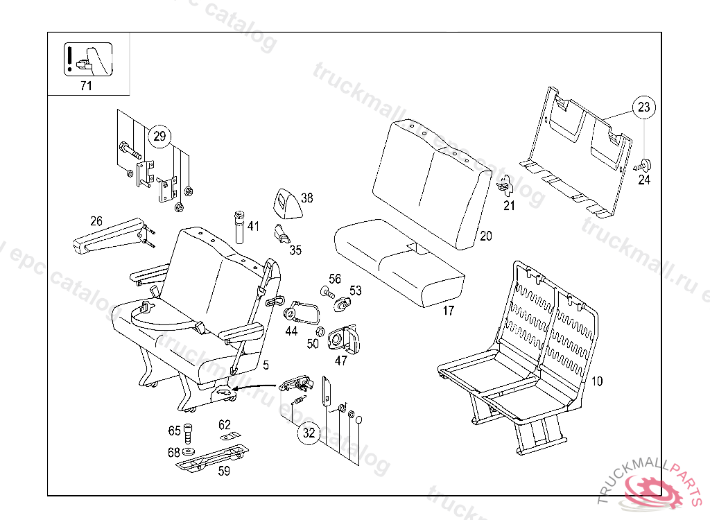 TAKE-UP DEVICE TRIPLE OCCUPANCY SEAT TO FLOOR