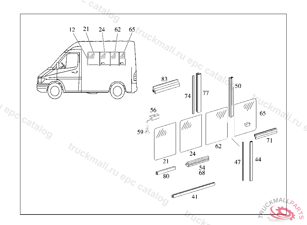 GLASS PANE FIXED,REAR LEFT TO 690 670 74 11