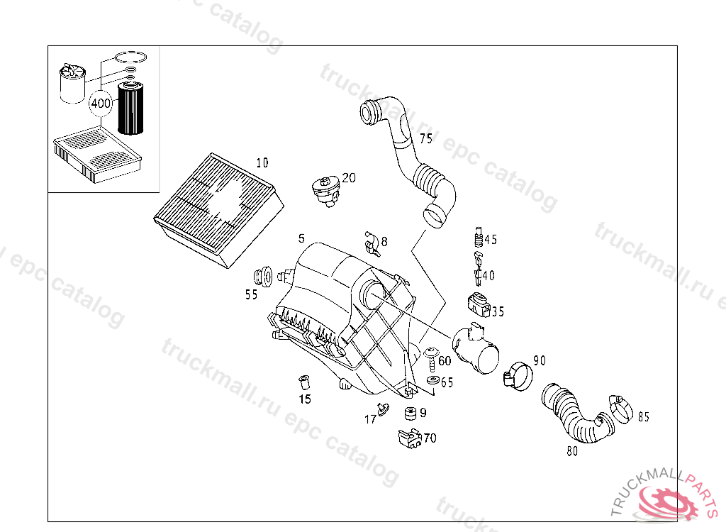 INTAKE PIPE. INTAKE MANIFOLD AIR FILTER ON CHARGE AIR COOLER
