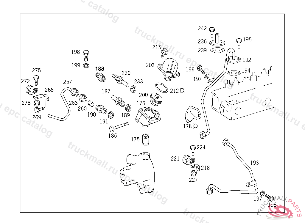 LINE COOLING WATER RETURN, FROM ENGINE 334392 YEAR OF MANUFACTURE 1994