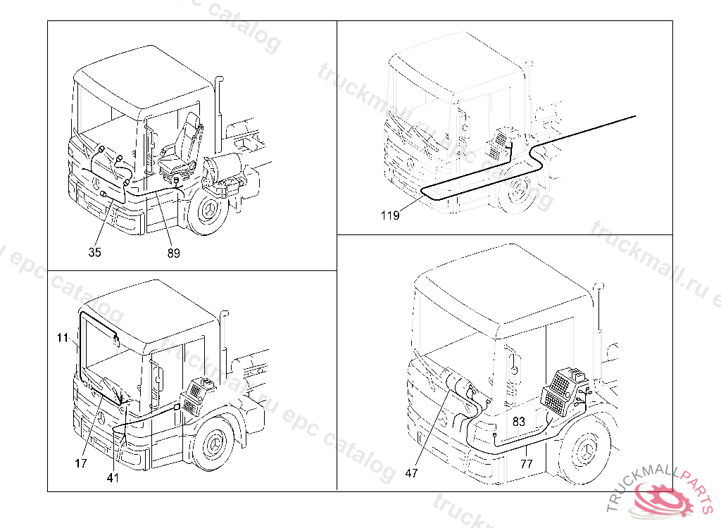 ELECTRIC CABLE INSTRUMENT PANEL TO CONTROL UNIT FOR LSVA (OUTPUT-RELATED HGV ROAD TAX), LESS SERVICE WITH TRAILER TO BE ADAPTED DURING ASSEMBLY