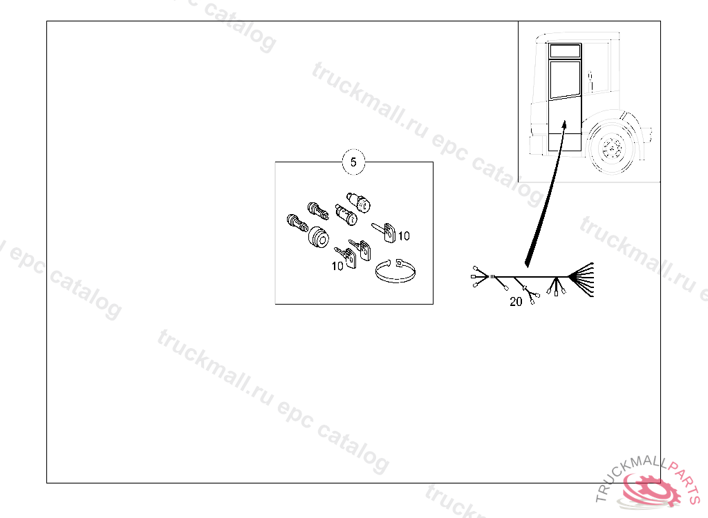 OUTFIT(LOCK,KEY,HANDLE) , SPECIFICATION: LOCK CYLINDER AND CAP, STEERING LOCK, 3X LOCK CYLINDER, DOOR AND TANK, KEY SET FOR COMPONENT PARTS SEE SPARE PARTS LIST