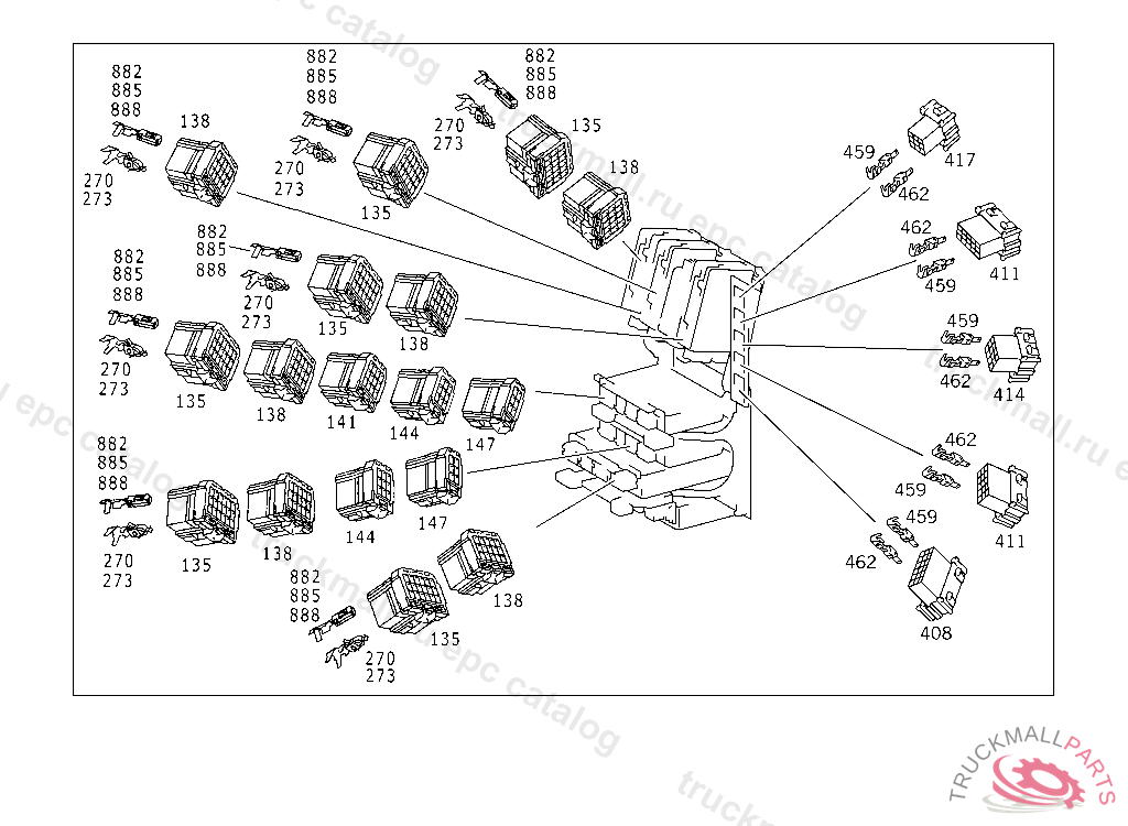PIN BUSHING HOUSING 18-POLE,GREY TO 011 545 80 26,81 26