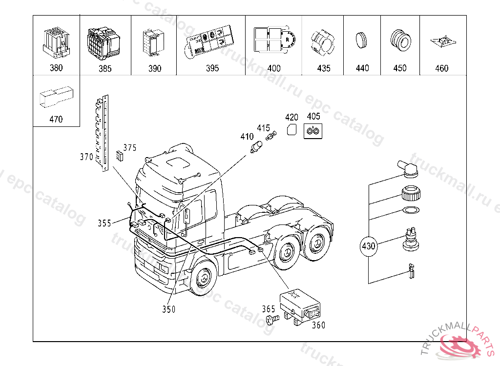 CABLE HARNESS FROM CHASSIS/CAB PLUG-CONNECTION TO CENTRAL LUBRICATION PUMP, THIS CABLE HARNESS IS A COMPONENT OF FRAME MOUNTED VERSION CABLE HARNESS AND CAN BE MADE AVAILABLE AS A SPARE ATTENTION: WHEN PLACING ORDERS, PLEASE QUOTE VEHICLE IDENT NO. ONLY IF FRAME MOUNTED VERSION CABLE HARNESS IS REQUIRED AS AN ASSEMBLY