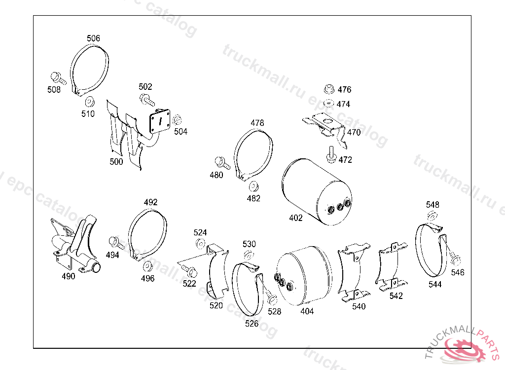 COMPRESSED AIR RESERVOIR STEEL 20 L,D276 MM, TO VOSS 232, FOR VEHICLES WITH VOSS 230 CONNECTOR: ADD. MOUNT FITTING "A 004 997 82 72" WITH O-RING "A 000 987 04 46" AND THRUST RING "A 000 997 02 03" TO AIR RESERVOIR