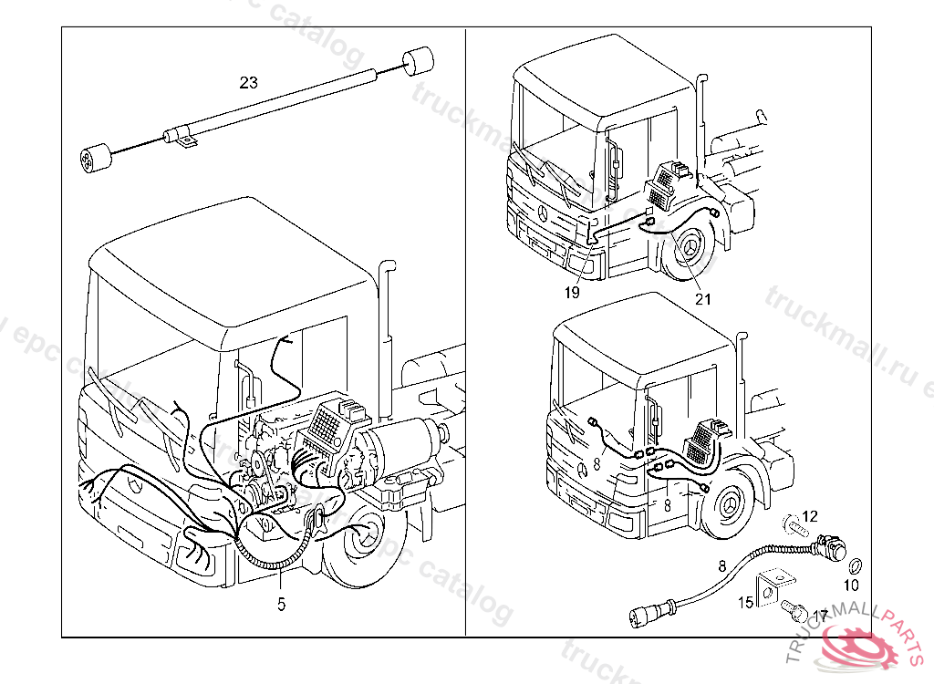 ELECTRICAL WIRING HARNESS WIRING HARNESS FOR FRONT FRAME AND ENGINE V26 / XVK33, STATE IDENT NO. WHEN ORDERING UP TO IDENT NO. V 221 515 ALSO ORDER: A 957 540 28 13 ELECTRICAL LINE