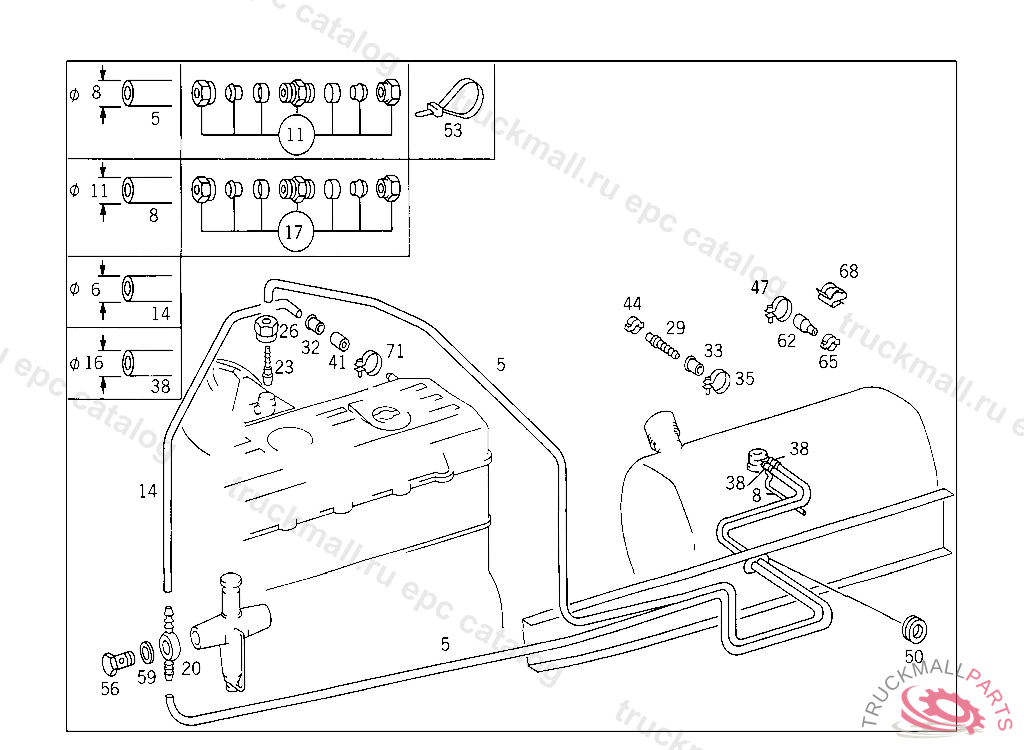 HOSE DE-AERATION M 8 X 11 MM, USED WITH SHORT MERCEDES-BENZ CAB5 350651