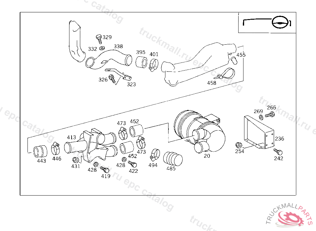 HOSE CLAMP FROM AIR CLEANER TO TRANSVERSE INTAKE PIPE, Replaced By: A0019951910