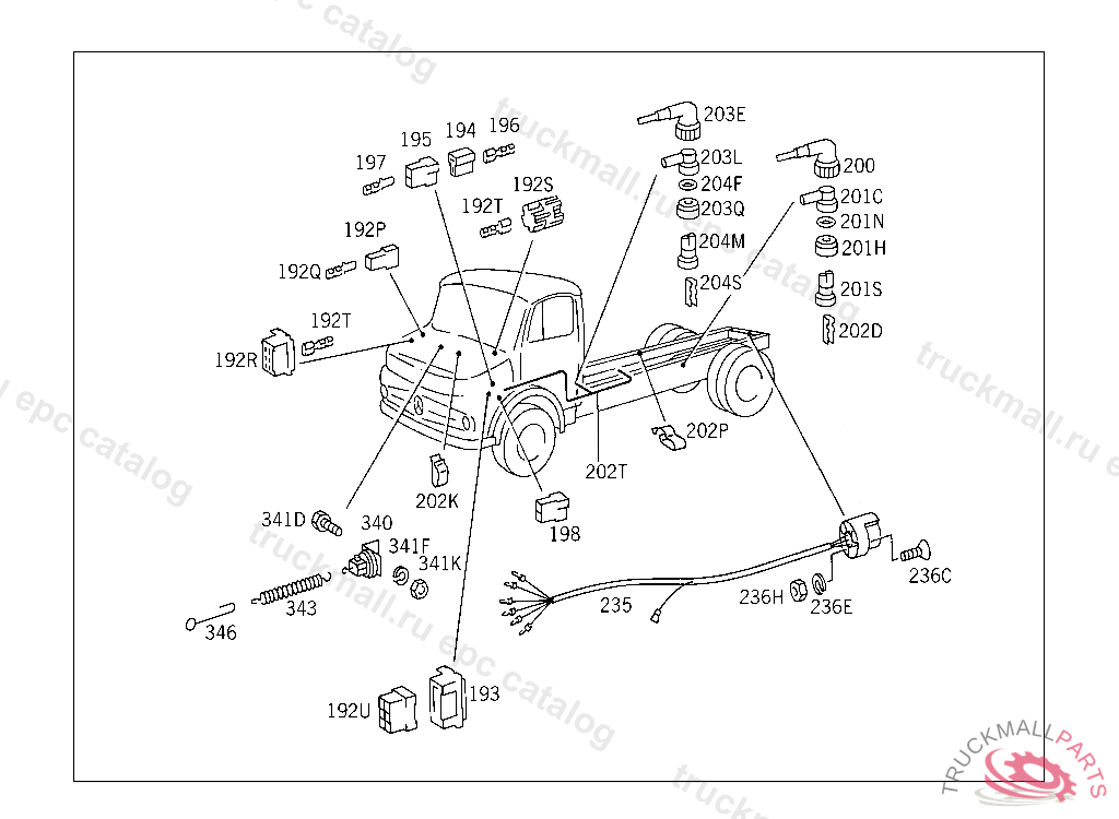 PIN BUSHING HOUSING. PLUG HOUSING FROM CHASSIS/CAB CONNECTION POINT TO TACHOGRAPH
