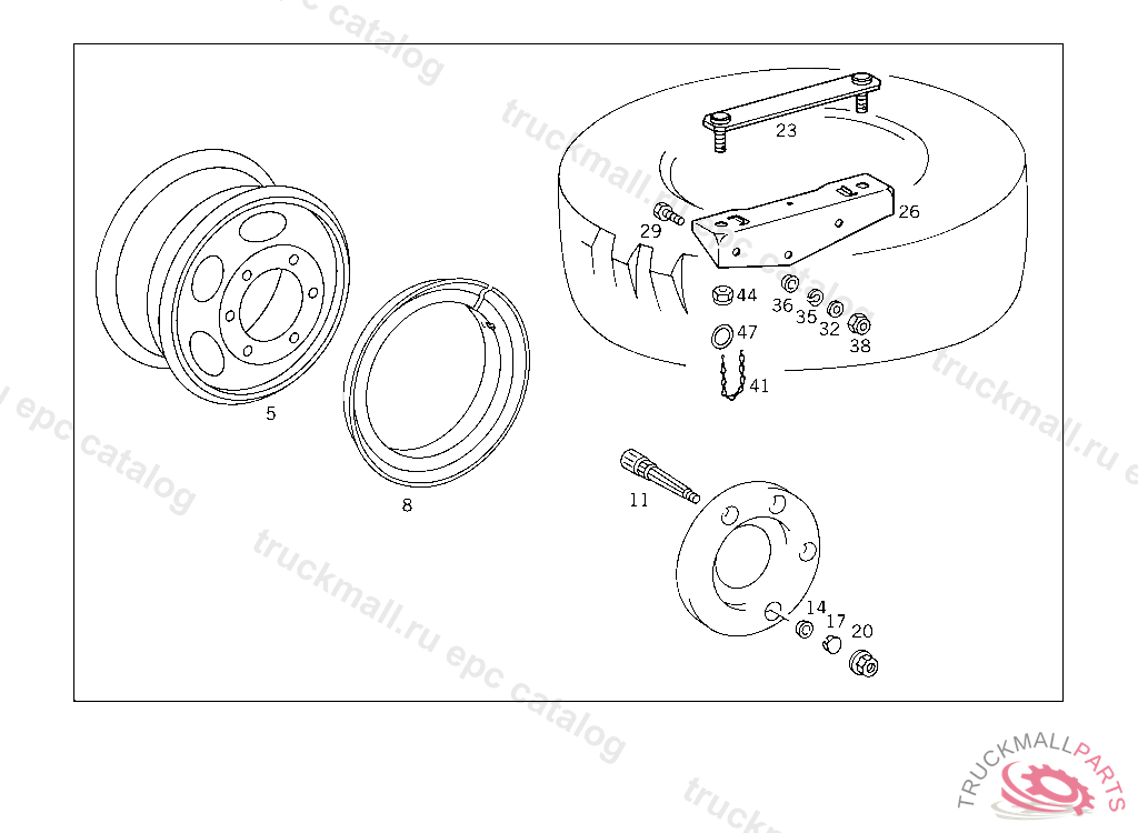 WASHER. SPHERICAL RING DISC WHEEL TO REAR AXLE