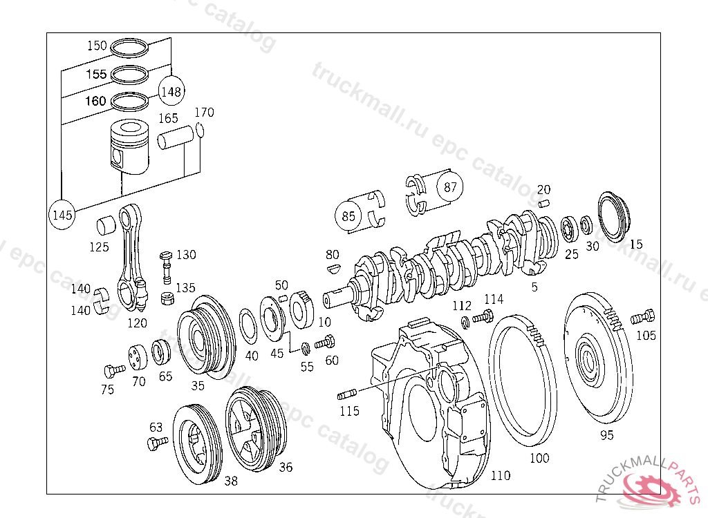 CRANKSHAFT WITH CRANKSHAFT BEARING SHELLS AND CONNECTING ROD BEARING SHELLS