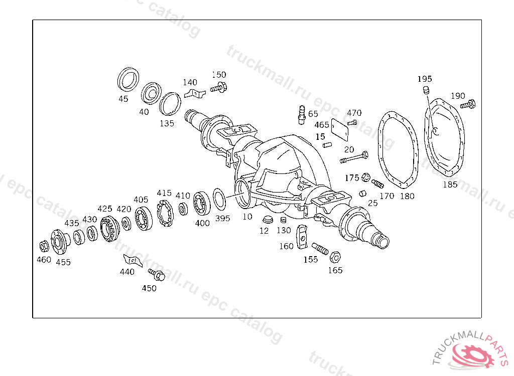 AXLE HOUSING WITH REAR AXLE TUBES AND DIFFERENTIAL CASE BEARING CAPS,N 037772