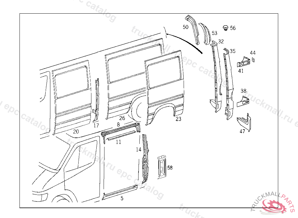214, 208CDI, 211CDI, 213CDI, 216CDI - 902.672 FROM IDENT-NR. R337627, 5337627, A901274 - 63 SIDE PANELS
