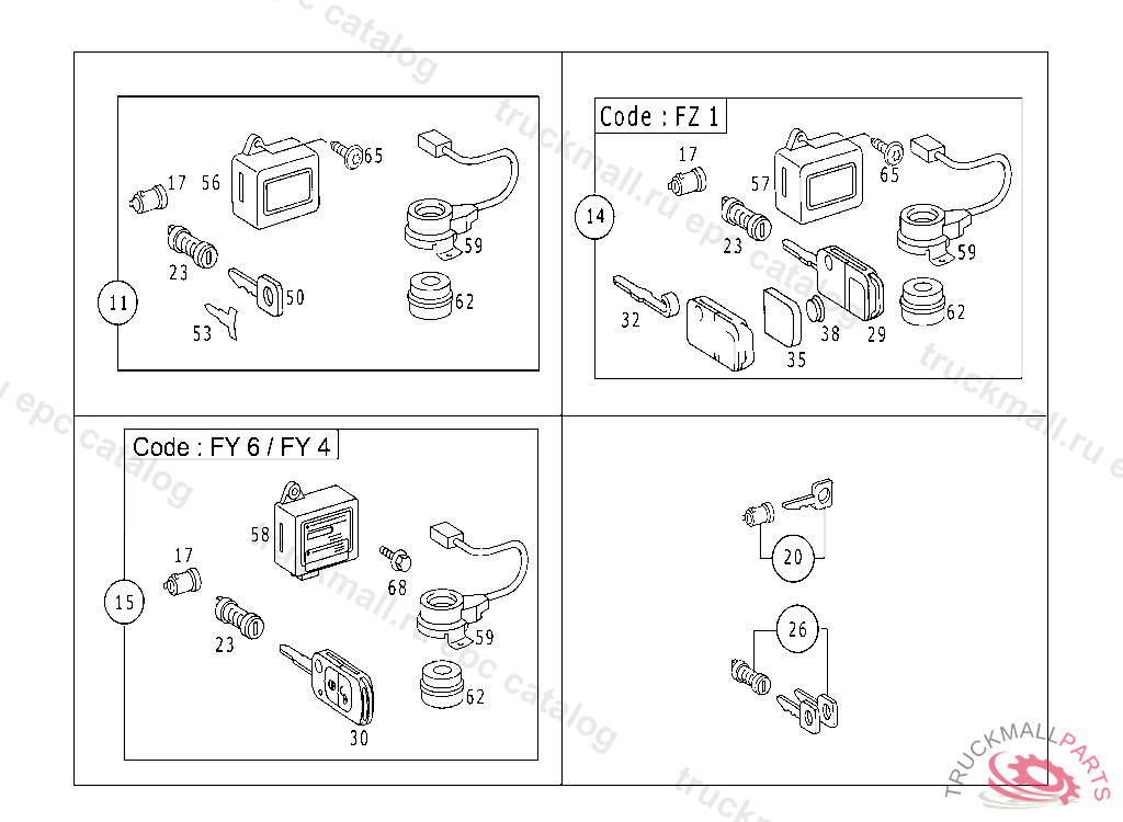 TUMBLER , LOCKING SYSTEM, SEE GROUP 72, Replaced By: A0004620179