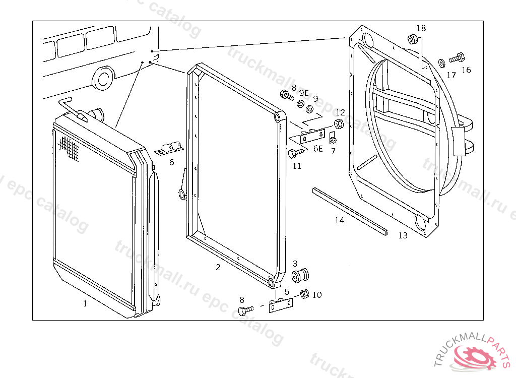 WASHER RADIATOR AND FAN SUPPORT TO BASE FRAME