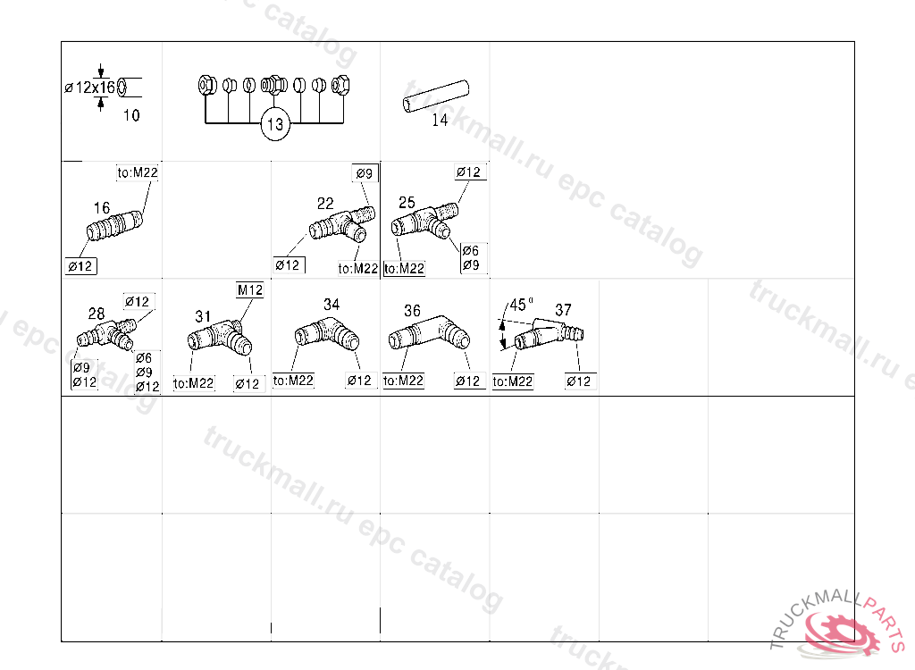 CONNECTION PIECE COMPRESSED-AIR-LINE PLUG-CONNECTION TO M22, 12MM, VOSS 232