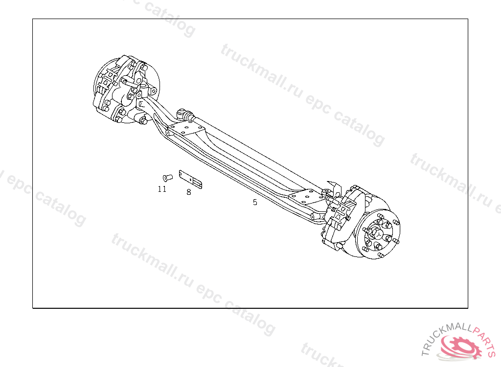 FRONT AXLE , IDENTIFY MAJOR ASSEMBLY FROM VEDOC OR ORDER BY SPECIFYING THE VEHICLE IDENT NO. OR MAJOR ASSEMBLY NUMBER. DETERMINE COMPONENTS IN VEDOC WITHMAJOR ASSEMBLY IDENT. END NUMBER