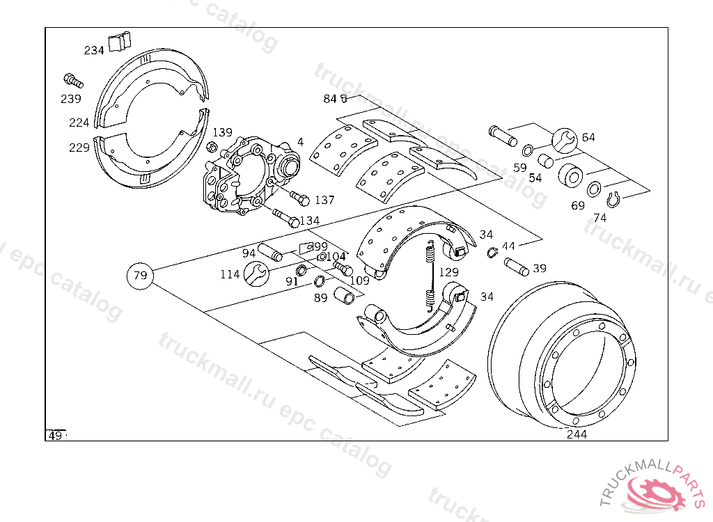 BRAKE SHOE , FIRST EXHAUST STOCK OF OLD PARTS UP TO FRONT AXLE E 128437, Replaced By: A6204200219