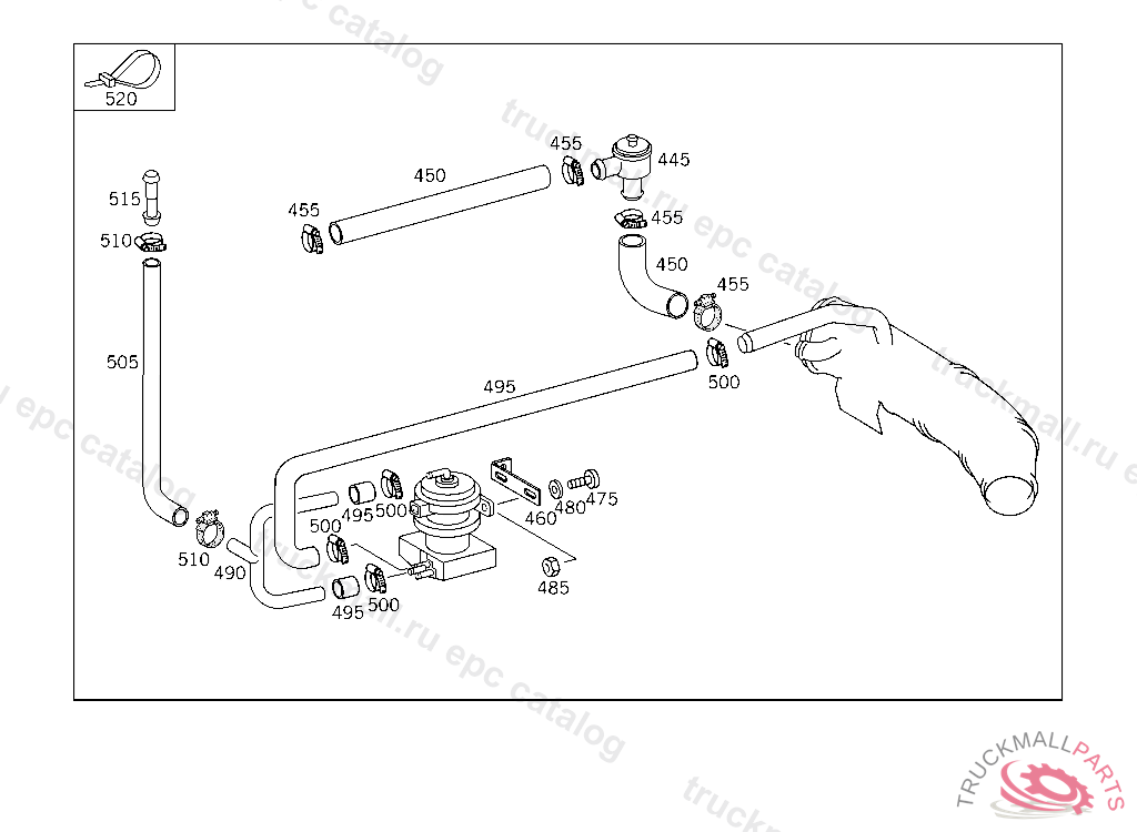 HOSE PUSH BUTTON CONNECTION FROM VALVE TO EXHAUST TURBO CHARGER 595 MM, ORDER BY THE METER