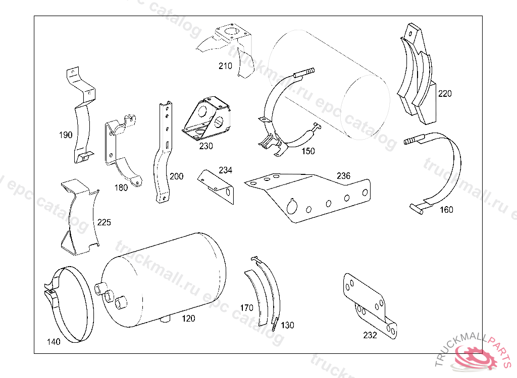 RESERVOIR (AIR RESERVOIR),STEEL VERSION 25L, FOR VEHICLES WITH VOSS 230 CONNECTOR: ADD. MOUNT FITTING "A 004 997 82 72" WITH O-RING "A 000 987 04 46" AND THRUST RING "A 000 997 02 03" TO AIR RESERVOIR
