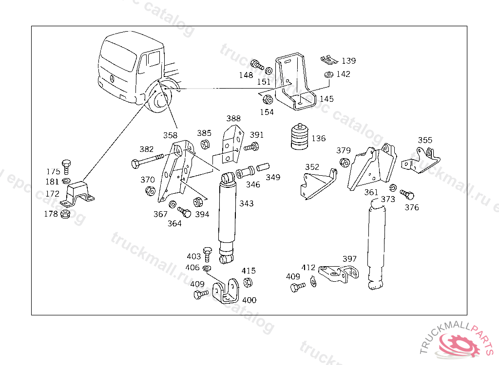 BRACKET RIGHT SHOCK ABSORBER, MODELS 385.068,069 FOR USE WITH MERCEDES-BENZ CAB4 336573