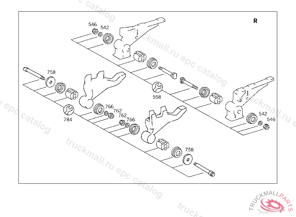 REPAIR KIT CAB SUSPENSION,FRONT, FOR USE WITH SHORT MERCEDES-BENZ CAB5 764324