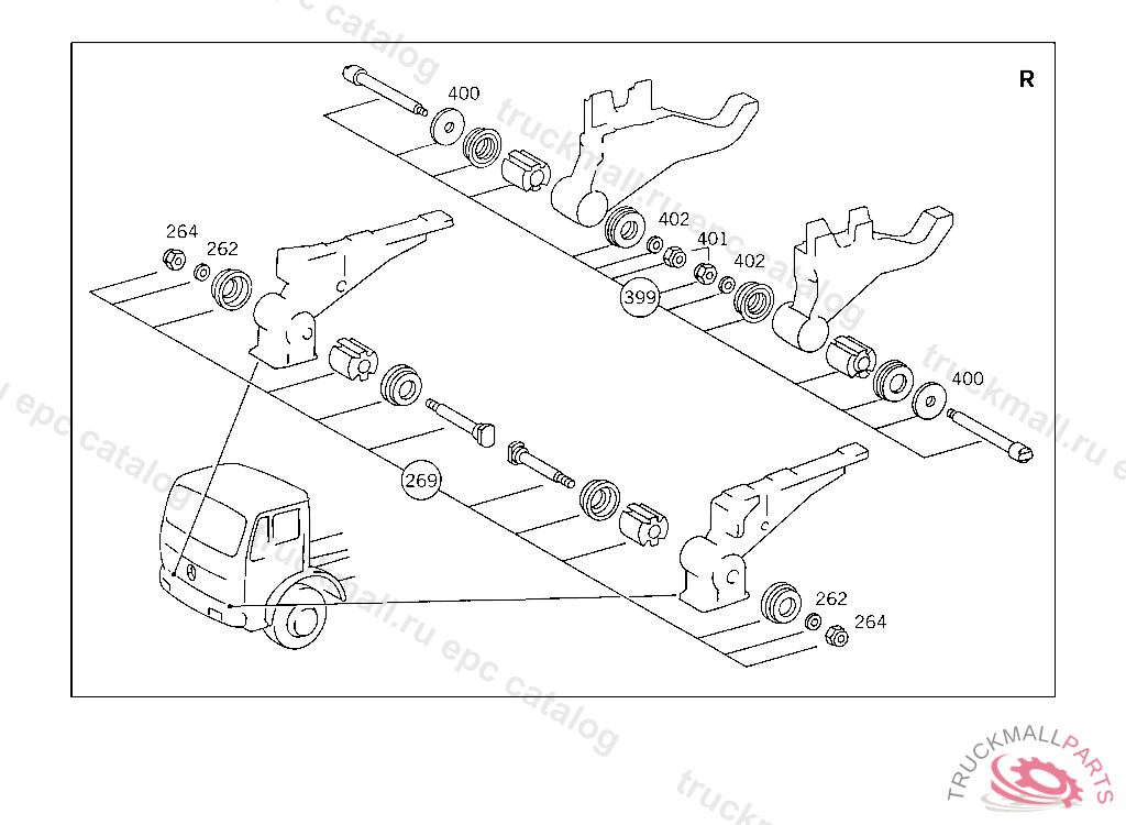 REPAIR KIT CAB SUSPENSION,FRONT, FOR USE WITH SHORT MERCEDES-BENZ CAB5 764324