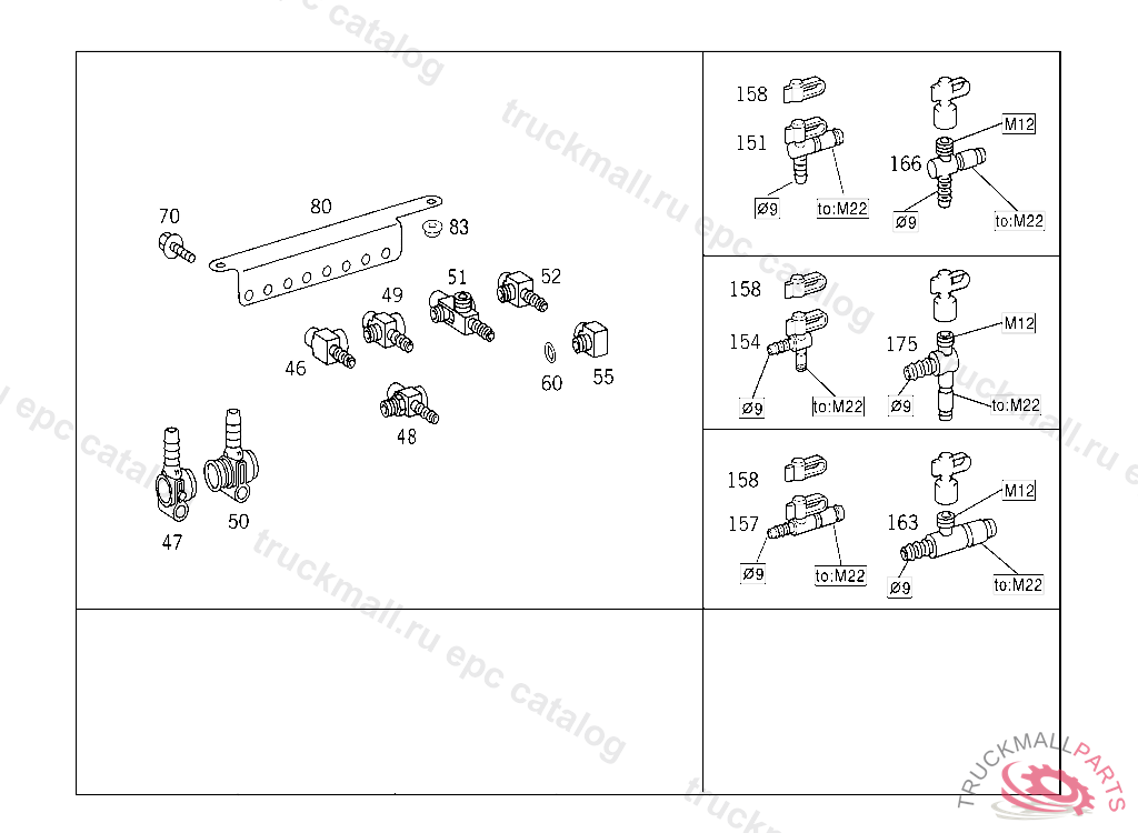 T-FITTING COMPRESSED-AIR-LINE PLUG-CONNECTION TO M 22, M 12X1.5 / 9 MM, VOSS 232
