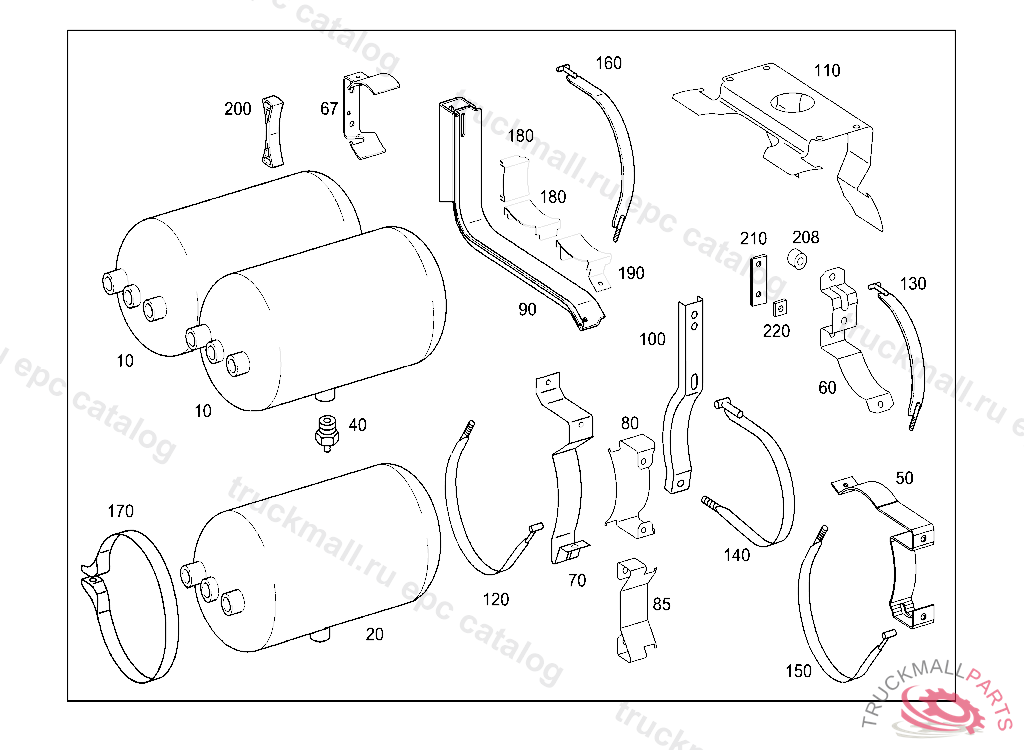 RESERVOIR (AIR RESERVOIR),STEEL VERSION 25L, FOR VEHICLES WITH VOSS 230 CONNECTOR: ADD. MOUNT FITTING "A 004 997 82 72" WITH O-RING "A 000 987 04 46" AND THRUST RING "A 000 997 02 03" TO AIR RESERVOIR