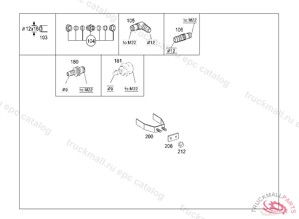 CONNECTION PIECE COMPRESSED-AIR-LINE PLUG-CONNECTION TO M22, 12MM, VOSS 232