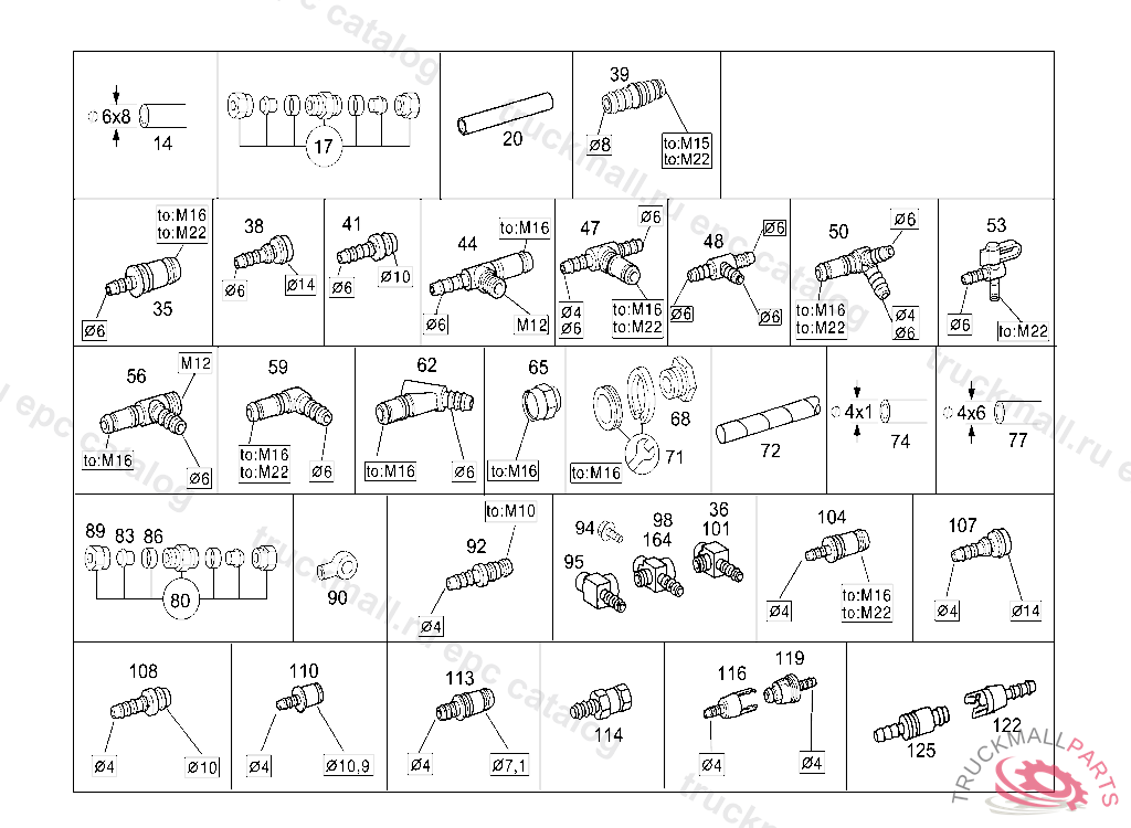 CONNECTION PIECE COMPRESSED-AIR-LINE PLUG-CONNECTION TO M16, 6MM, VOSS 232, Replaced By: A0049976989
