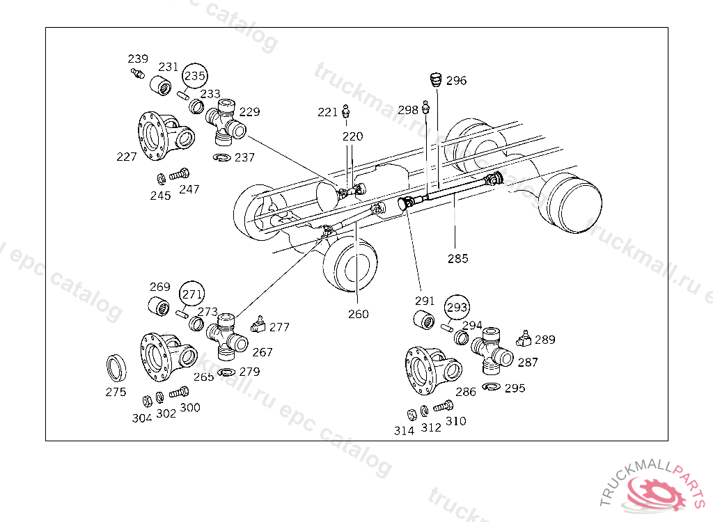 PROPELLER SHAFT FROM TRANSFER CASE TO REAR AXLE 995 MM
