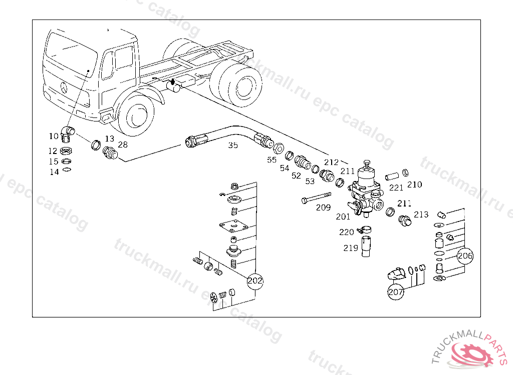 FITTING TWO-CIRCUIT BRAKE VALVE,CONNECTION: "21", 620.415 UP TO CHASSIS 5 014668 620.416 UP TO CHASSIS 5 000515 620.417 UP TO CHASSIS 4 972023