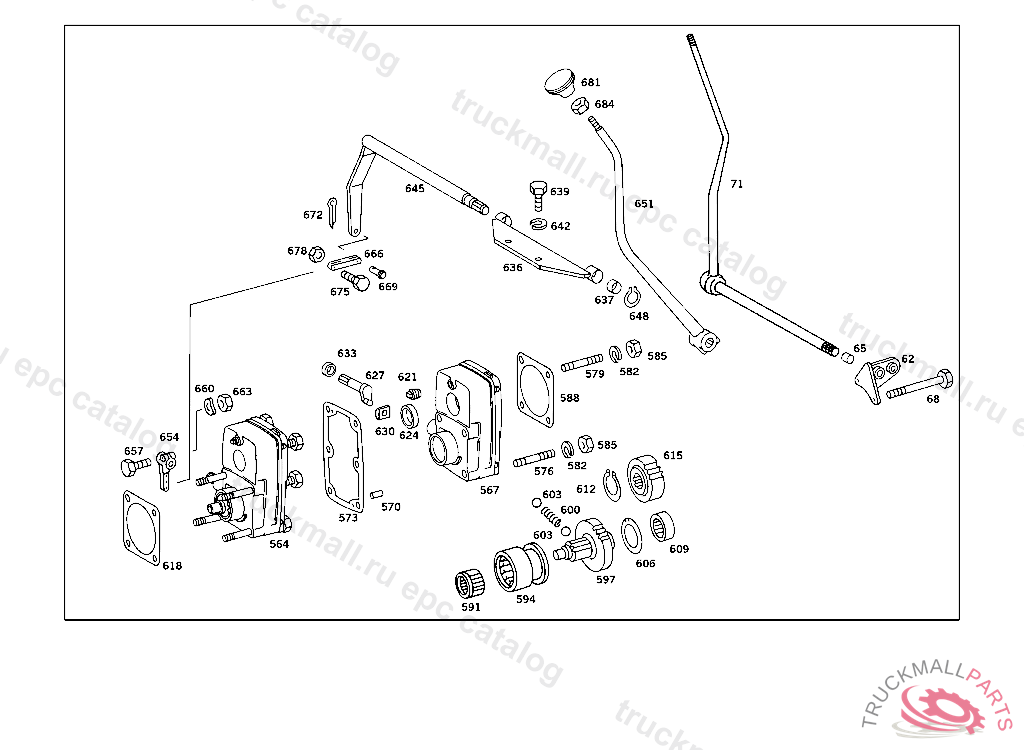 TRANSMISSION AK 6-80(HILL GEAR)1ST SPEED RATIO1:9.0,6TH SPEED RATIO1:1.0, FOR TYPES L-LK-LS 1621/1921 L/LA 1624 FOR COMPONENT PARTS,SEE SPARE PARTS LIST
