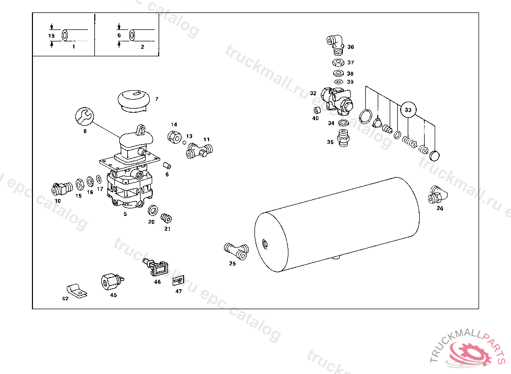 REPAIR KIT COMPRESSED AIR CYLINDER TO 001 431 35 05,001 431 94 05,WABCO, 620.415 UP TO CHASSIS 5 014668 620.416 UP TO CHASSIS 5 000515 620.417 UP TO CHASSIS 4 972023