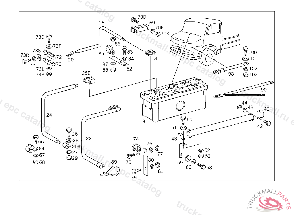 BRACKET BATTERY CABLE TO CAB CROSS MEMBER, 10/50 FROM IDENT NO. 729507, 20/60 FROM IDENT NO. 726580, ALSO INSTALLED ON 500001-599999