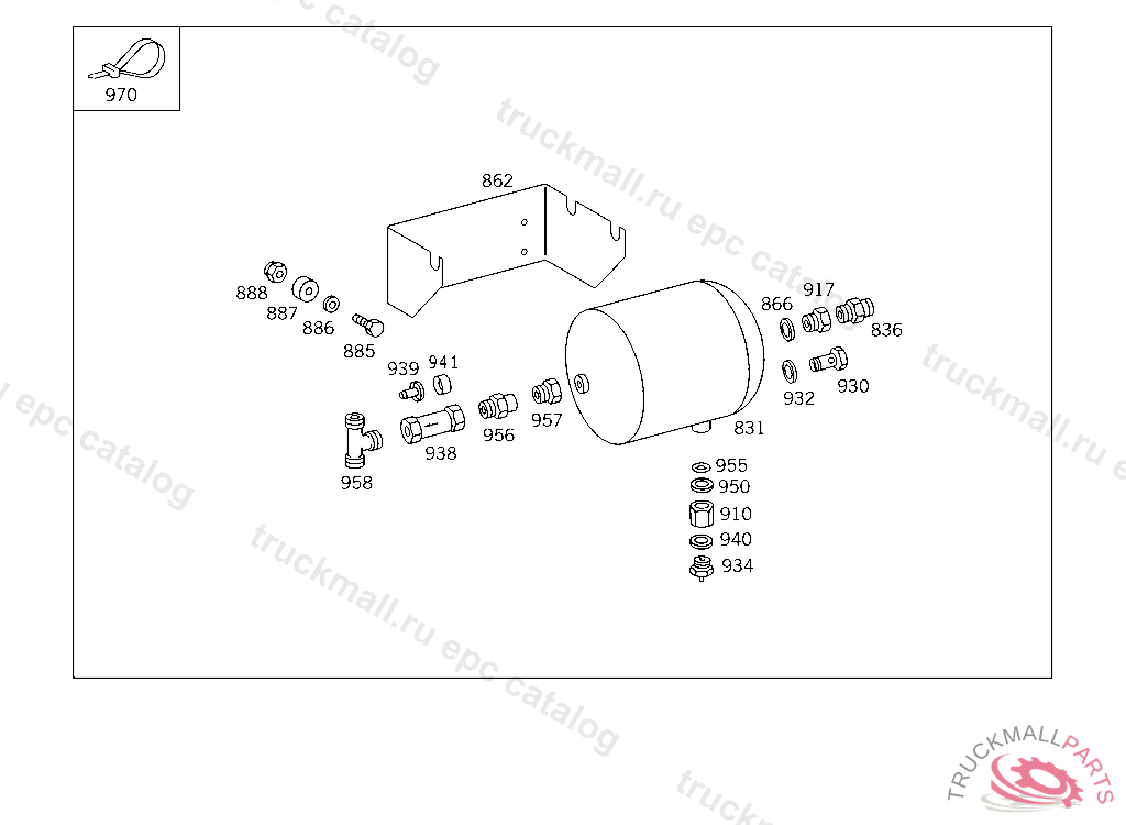 RESERVOIR COMPRESSED AIR 7,5 L,EURO,075979 UP TO IDENT NO. 077812 WITH MERCEDES-BENZ BODY UP TO IDENT NO. 077960 LESS MERCEDES-BENZ BODY