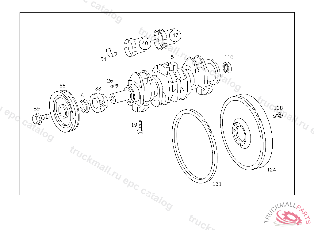 CRANKSHAFT WITH CRANKSHAFT BEARING SHELLS AND CONNECTING ROD BEARING SHELLS