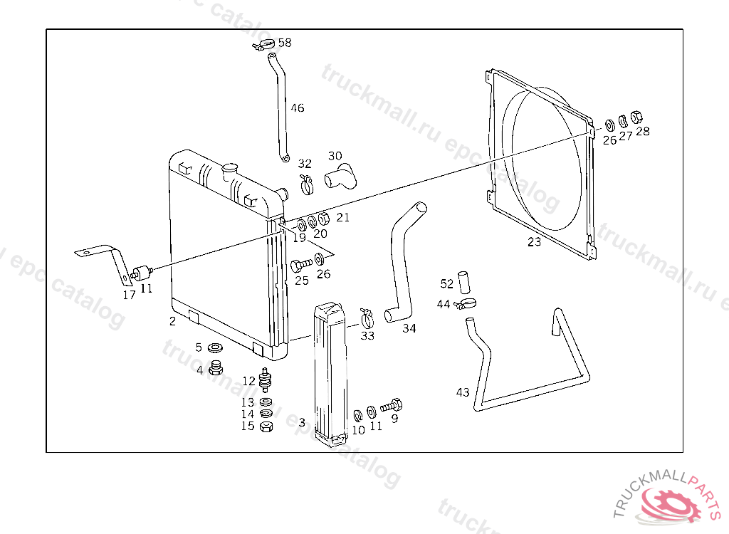 HOSE FROM THERMOSTAT TO RADIATOR, 309.0 UP TO CHASSIS 001150, 309.1 UP TO CHASSIS 015696 EXCEPT FOR:015539,015594,015609