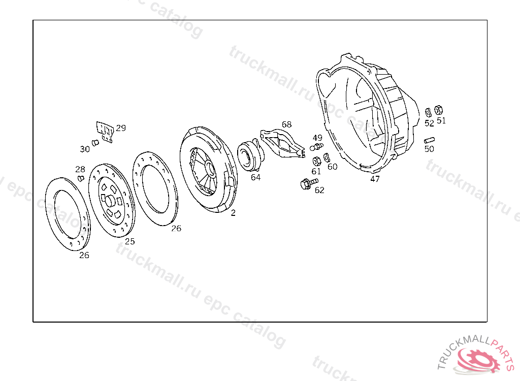 CLUTCH PRESSURE PLATE , UP TO IDENT NO. 941505 EXCEPT FOR 899081-941503 ONLY WITH OM601/OM602 ENGINE NOT WITH TWO-MASS FLYWHEEL
