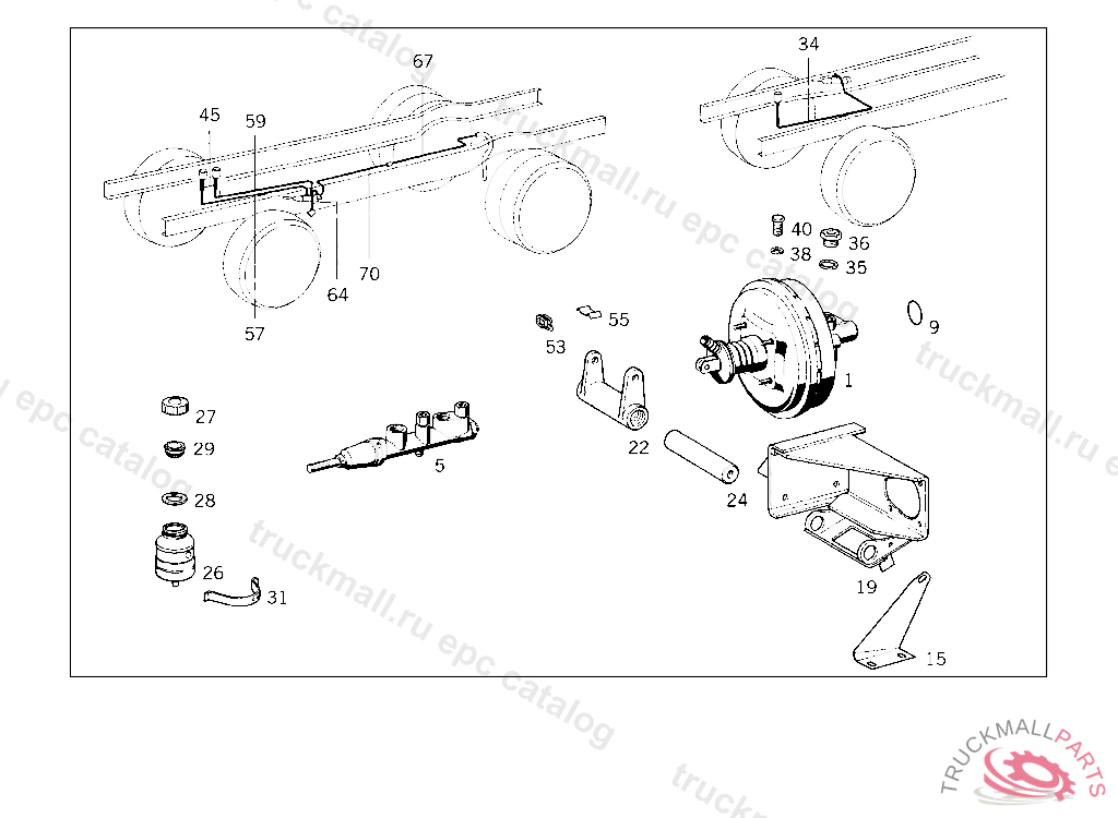BRAKE MASTER CYLINDER , ON TRUCKS,L.H.D.UP TO CHASSIS 145736 ALSO INSTALLED ON 145741,145768,145770,145774,145786,145787,145795 145697,145701,145807,145808,145819,145825,145830,145837,145840,145846,145860,145861,145888,145901, 145907,145910,145911,145913-145917,146138. EXCEPT FOR 139841,139842,140553,145397,145406,145409,145426,145445,145462,145660. ON TRUCKS,R.H.D.UP TO CHASSIS 148036 WITH EXCEPTION OF 140555,142078 ON BUSES,L.H.D.UP TO CHASSIS 018153 ALSO INSTALLED ON 018155,018156,018159,018308,018310,018315,018317,018318,018327,018350,01 8355 WITH EXCEPTION OF 017661,017829, ON BUSES,R.H.D.UP TO CHASSIS 018729