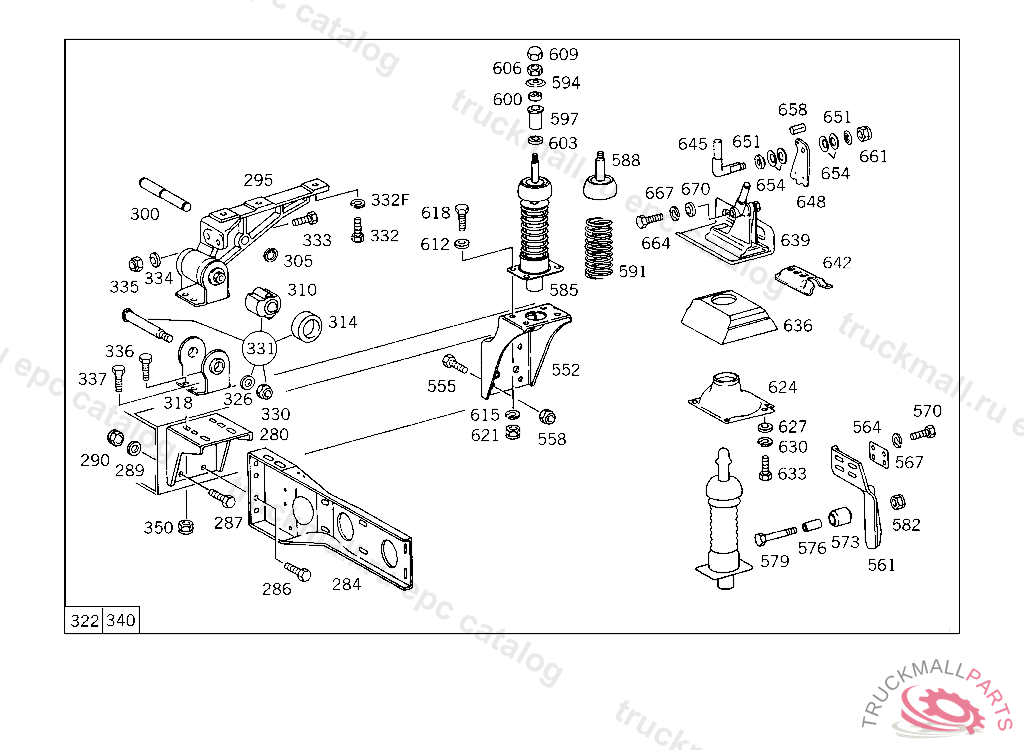 REPAIR KIT CAB SUSPENSION,FRONT, FOR USE WITH SHORT MERCEDES-BENZ CAB5 764324